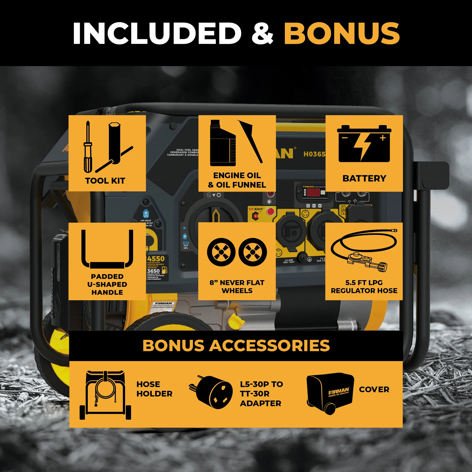 Versatile. Portable. Dependable. The FIRMAN T04073 is your go-to solution for tri-fuel portable power.